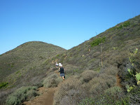 The sitting down part had now become a task in itself. The famous last words were upon me, Don't blow out your Quads! and sure enough, as the day wore my quads started to give to the downhills and now that it was night I was having a tough time running period. I could walk with a 16 min pace and felt okay. As I finished up my food, the aid station crew had refilled my pack and hand held and I was off back in to the night. There were a couple of runners that had already left and although it didn't even cross my mind to try and stay with them or catch them I slowly started to reel them in on the trail and as I approached them I would quicken my pace and try and blast as fast as I could past them, my own little way of keeping me going without a pacer. By now I was just about on the back side of the uphill grind and many lights were heading my way. As they would pass we would exchange encouragement but the most thing I was sad about in the back of my mind was that I didn't have a pacer and I could really see the added benefit-value in that. This trail is not too technical so that made it just a little okay without one but overall it's a plus to have! As I hit the flatter part of the back side of the trail heading to coyote camp aid station I tried running but again my quads just didn't have it and now even the slightest downhill sections were making them achy and I was starting to twist my body to maneuver these grades. Once I was powering uphill I was okay, I was rockin', I was in the zone, my training for this type of stuff had paid off and I was happy with that. As I approached the next aid station I knew in the back of mind that the once thought of going for the 100 miler or anything about 100k mark was simply just that, a thought. I knew that based on my training and issues leading up to JJ100 that I was in the best position to stop and not push into the red zone and create recovery problems I just didn't need. This was my plan from way back when I signed up and I knew that I had to hold tight to it and not tank myself or my quads any more than they already were.
